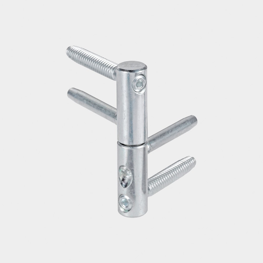 Cerniera registrabile realizzata in acciaio stampato. Adatta anche a porte tagliafuoco e portefinestre e finestre pesanti. Il perno cerniera è in acciaio stampato con camicia autolubrificante e antiossidante e sfera girevole in acciaio temperato. Cerniera certificata con marchio CE secondo normativa EN 1935 ed è quindi adatta per l'utilizzo su porte tagliafumo e tagliafuoco.