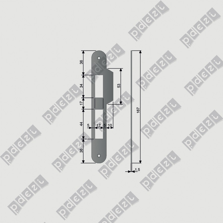 INCONTRO SERRATURA CENTRO CON CATENACCIO BORDO TONDO E ALETTA SAGOMATA 10MM - LARGHEZZA 22MM, LUNGHEZZA 167MM