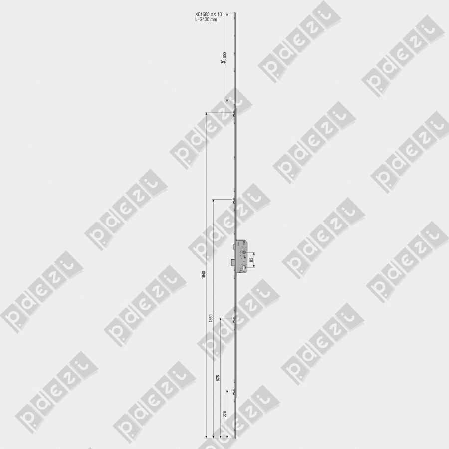 MULTIPUNTO SICURTOP MOD. 1685, INTERASSE 85MM CON NOTTOLINI - FRONTALE 16 MM, LUNGHEZZA 2400MM, QUATTRO PUNTI DI CHIUSURA, CAMPO DI APPLICAZIONE DA 1900 A 2400 mm