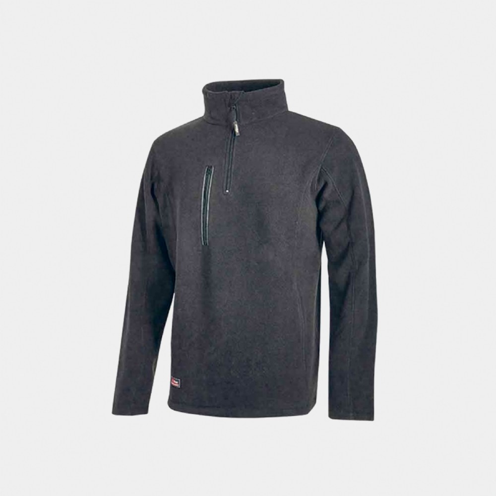 Giacca in pile a mezza zip, 2 tasche, taschino portacellulare al petto con chiusura zip; parazip con cimosa brandizzata.