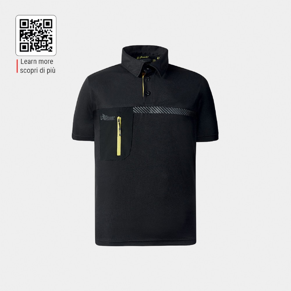Polo uomo in tessuto termoregolatore con tecnologia HeiQ in grado di mantenere la temperatura ideale costante.
