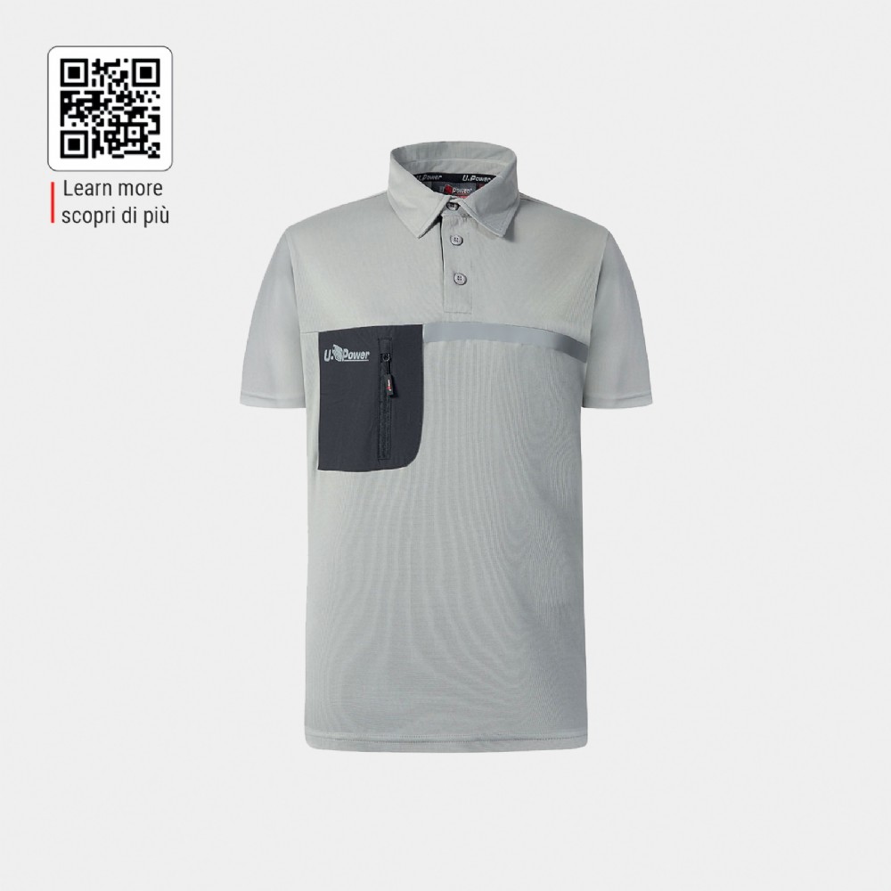 Polo uomo in tessuto termoregolatore con tecnologia HeiQ in grado di mantenere la temperatura ideale costante.