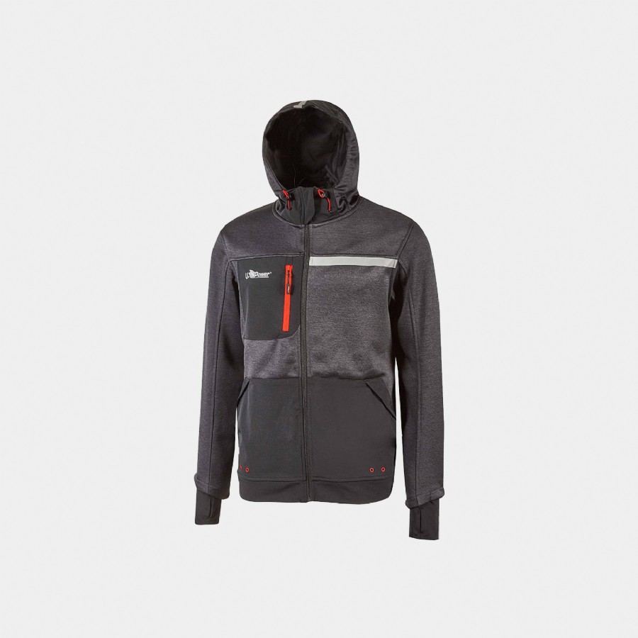 Il design è arricchito da una banda reflex sul petto e sul cappuccio nelle varianti colore Asphalt Grey e Dark Green, mentre nella versione Black Carbon le bande hanno un effetto carbonio. Stampa logo reflective “U-Power” sul petto lato destro.