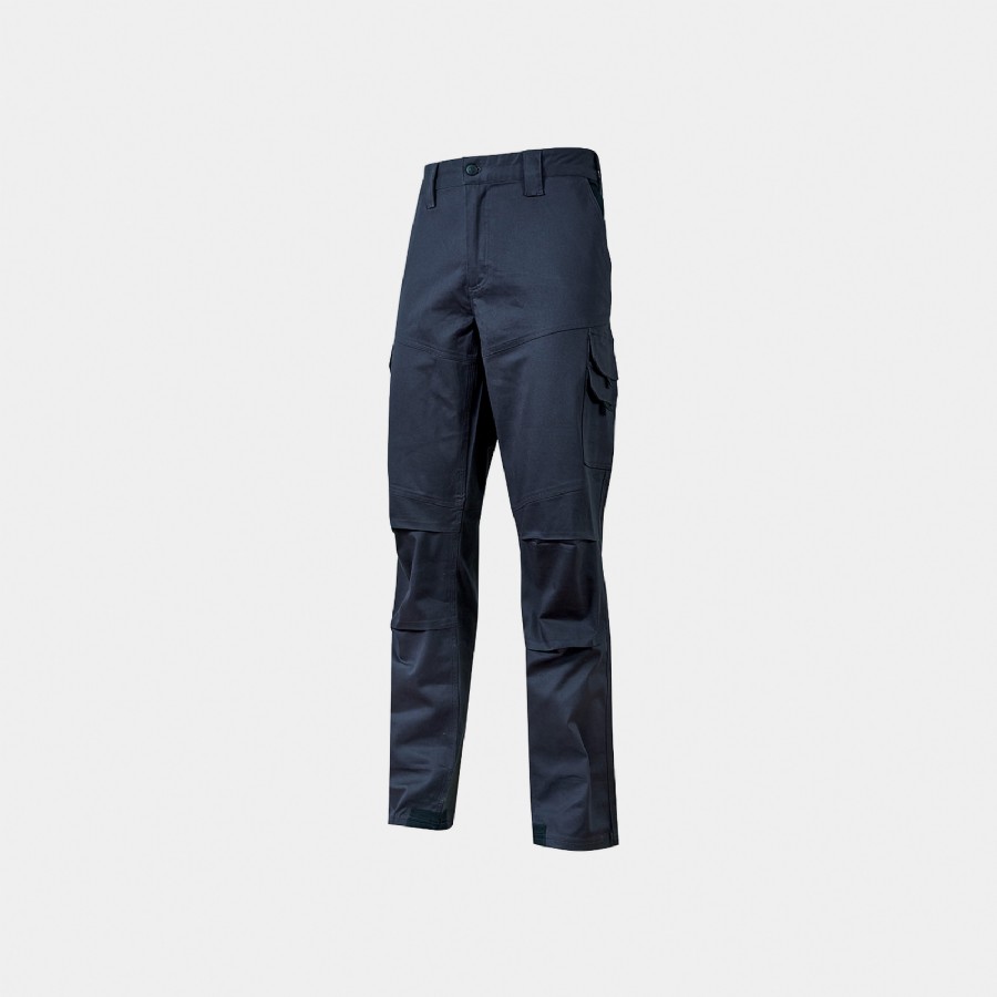 Pantalone da lavoro in cotone elasticizzato. Dotato di due ampie tasche multifunzionali laterali, due tasche anteriori e una tasca posteriore.